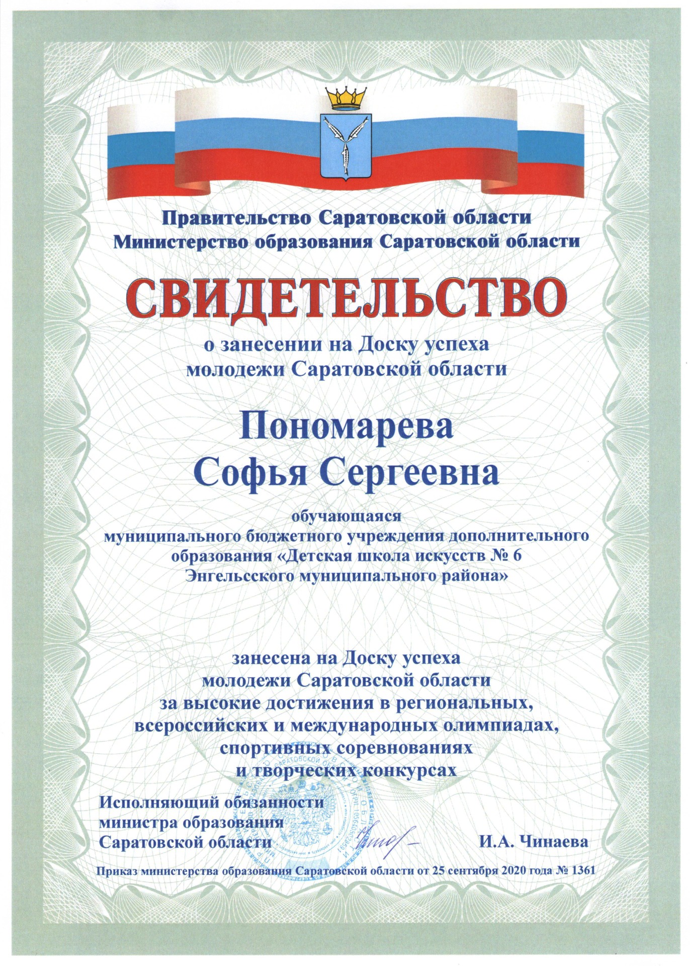 Поздравляем Пономареву Софью с занесением на Доску успеха молодежи Саратовской области.