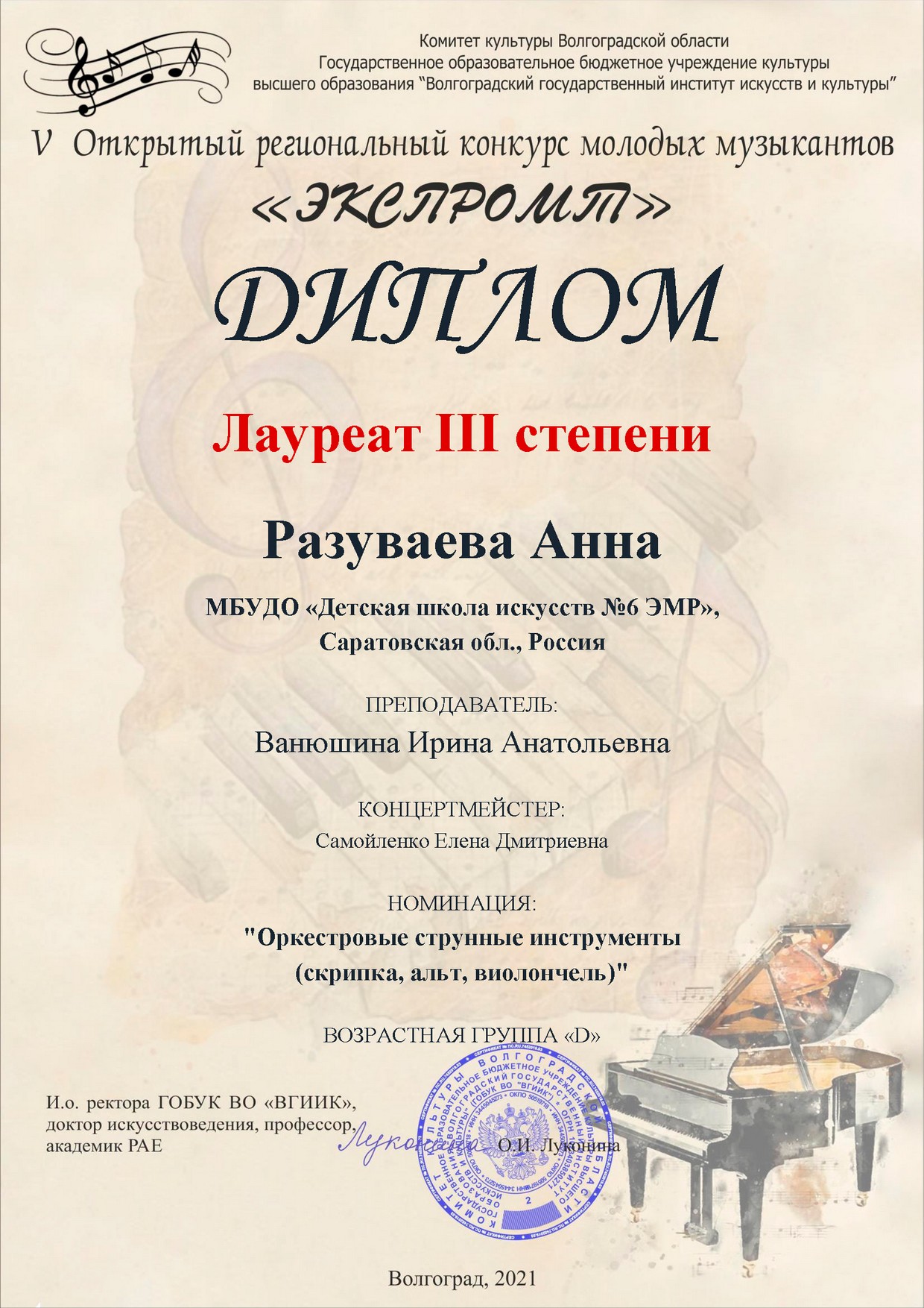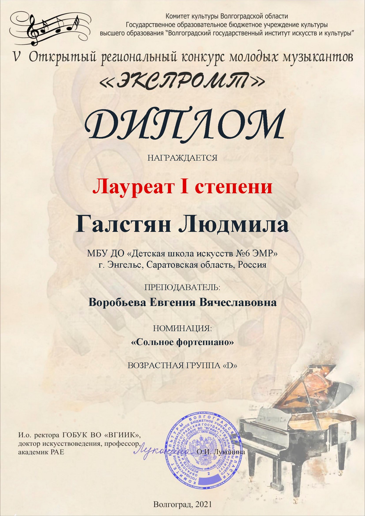 Поздравляем учащихся ДШИ №6 - лауреатов V Открытого регионального конкурса молодых музыкантов «Экспромт» (г. Волгоград)
