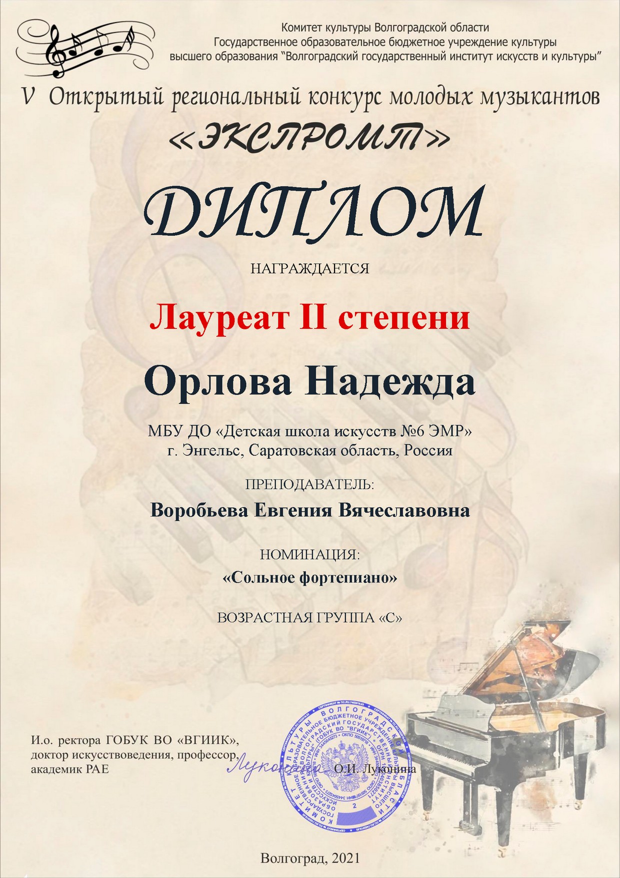 С 5 февраля по 7 февраля 2021 года в Волгоградском государственном институте искусств и культуры  прошёл V Открытый региональный конкурс молодых музыкантов «Экспромт».
