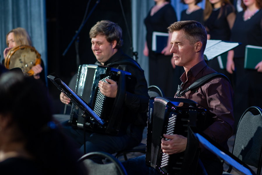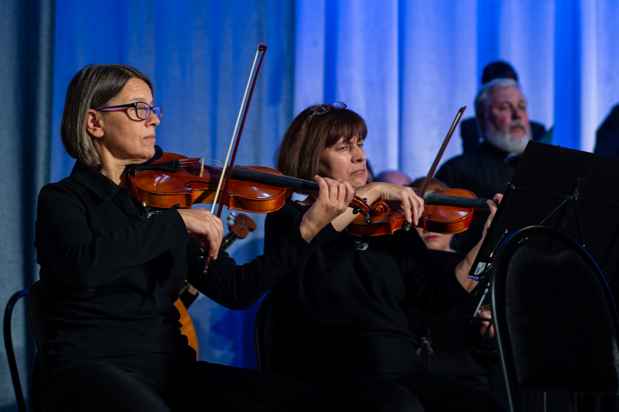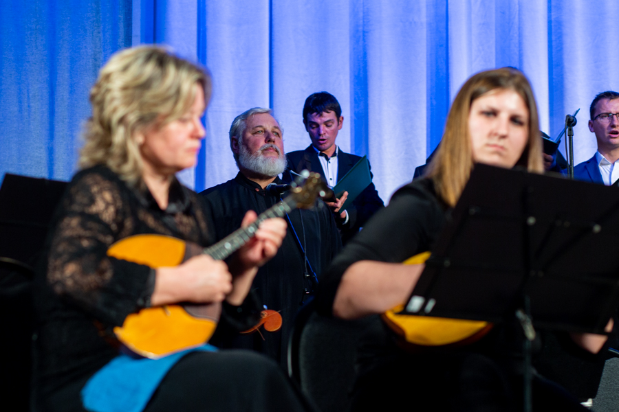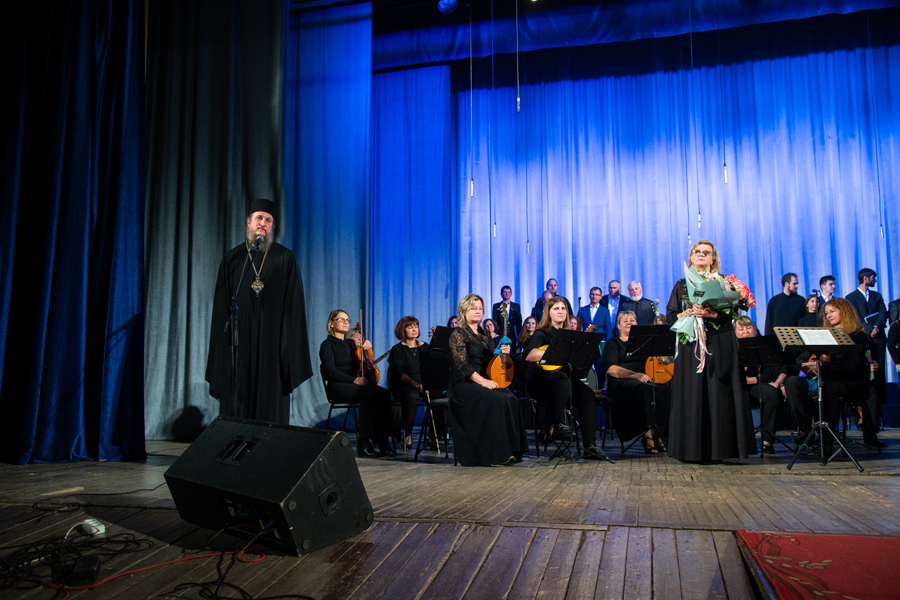 «Музыка сопровождает нас с колыбели и не оставляет в самые важные периоды жизни. Она воспитывает, разграничивает добро и зло, яркими красками рисует картину мира и подводит к пониманию своего места в нем», – отметила ведущая программы Дарья Хохлова, представляя оркестр народных инструментов под руководством дирижера Сергия Бондаренко. Тепло слушатели приняли инструментальные произведения в исполнении музыкантов. Несколько горячо любимых в народе песен Архиерейский хор исполнил под оркестровую музыку.