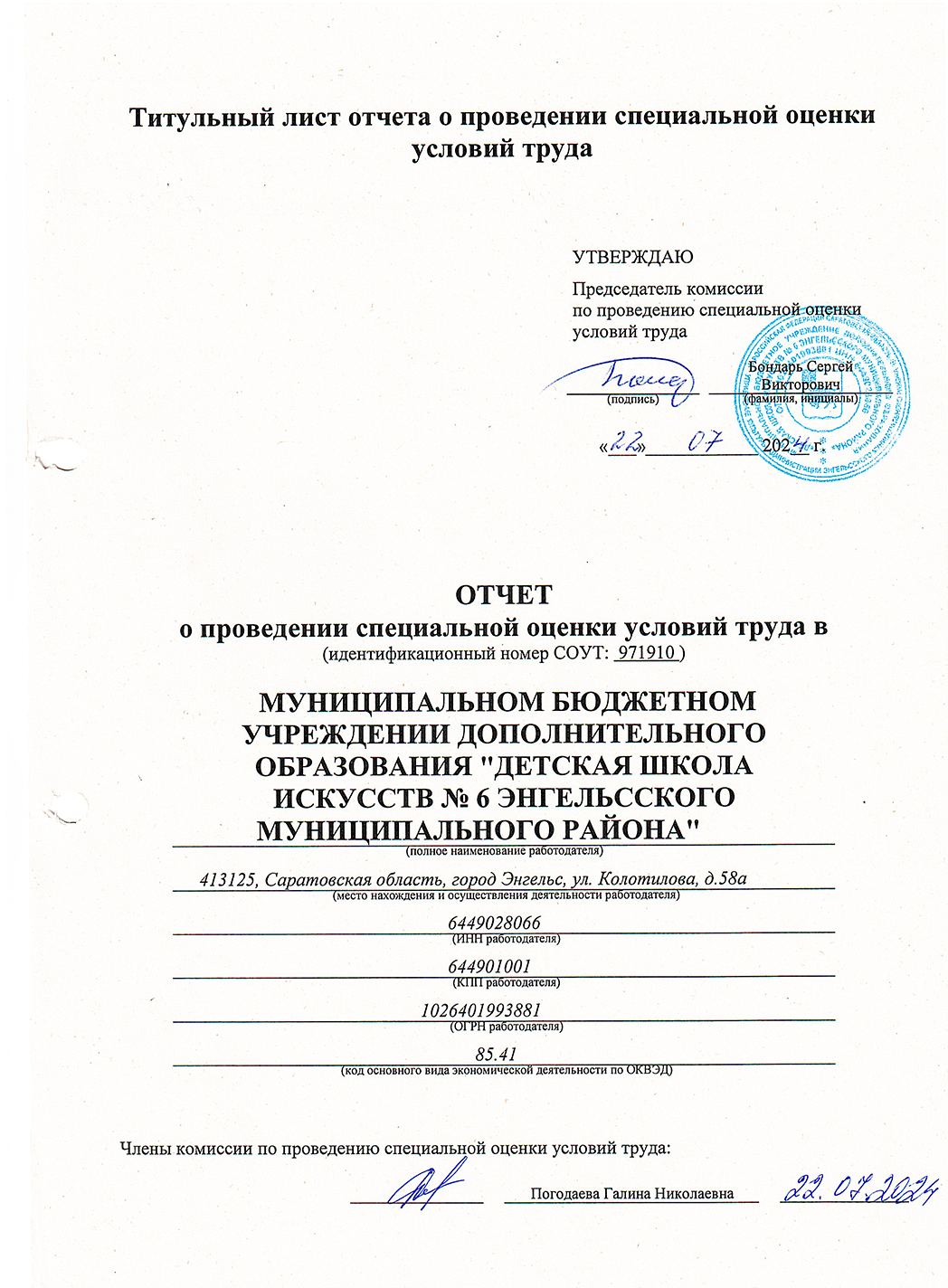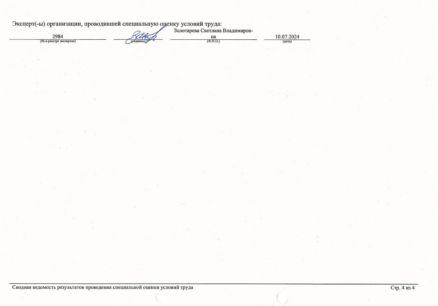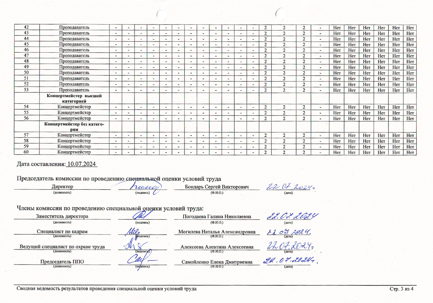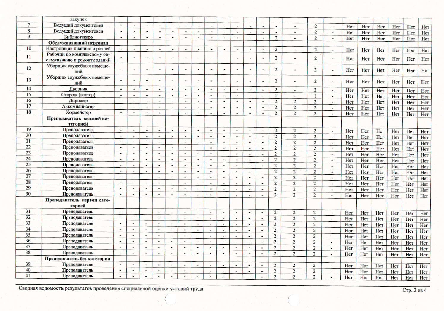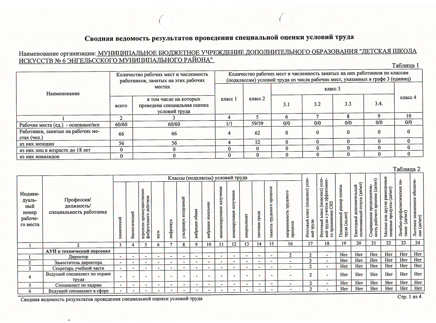 Результаты оценки условий труда